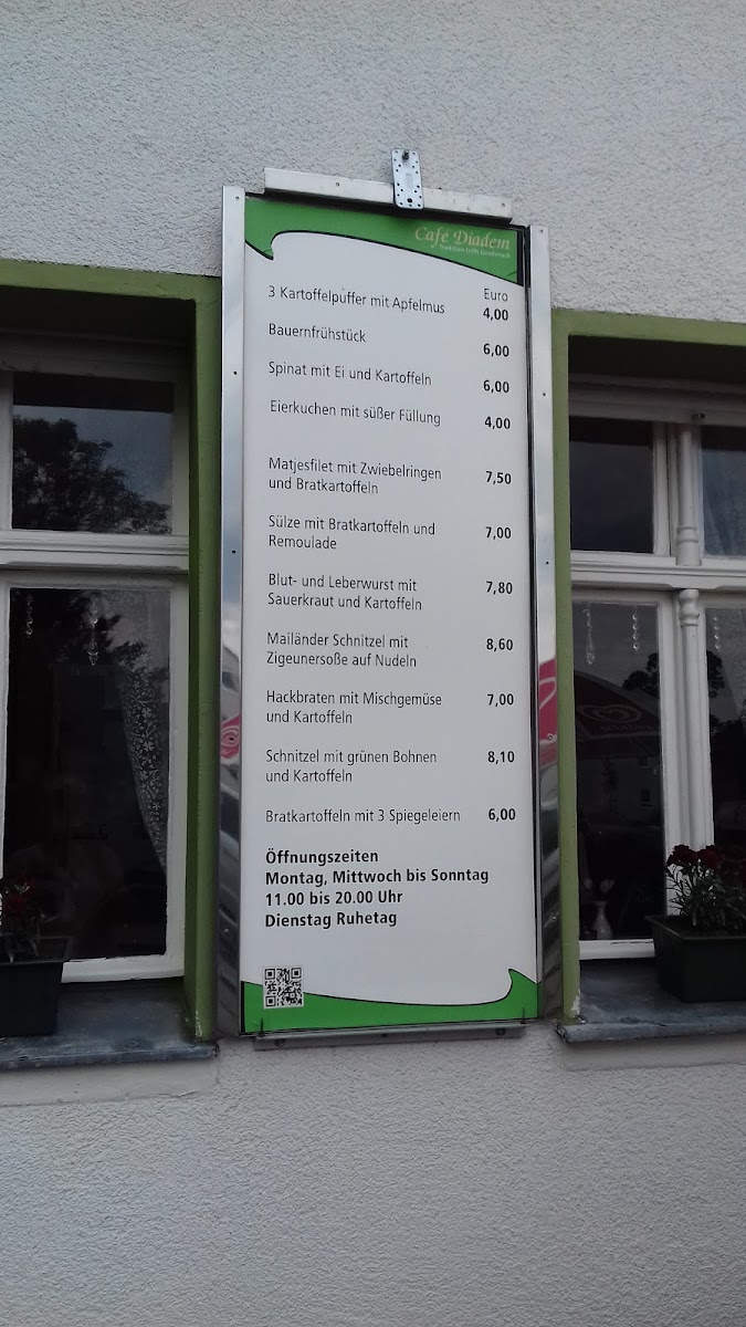 Welcome to Cafe Diadem, a charming cafe nestled in Hennigsdorf that promises a delightful culinary experience. Located at Dorfstraße 28, this cafe excels in creating an inviting atmosphere, where outdoor seating allows guests to enjoy their meals al fresco.